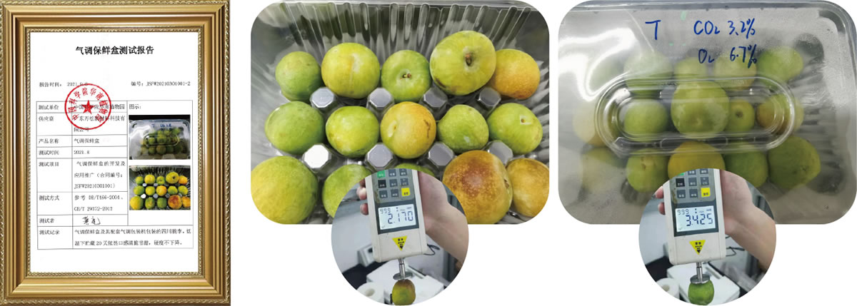 气调保鲜盒及其配套气调包装机包装的四川脆李,低温下贮藏20天依然口感清脆甘甜,硬度不下降。